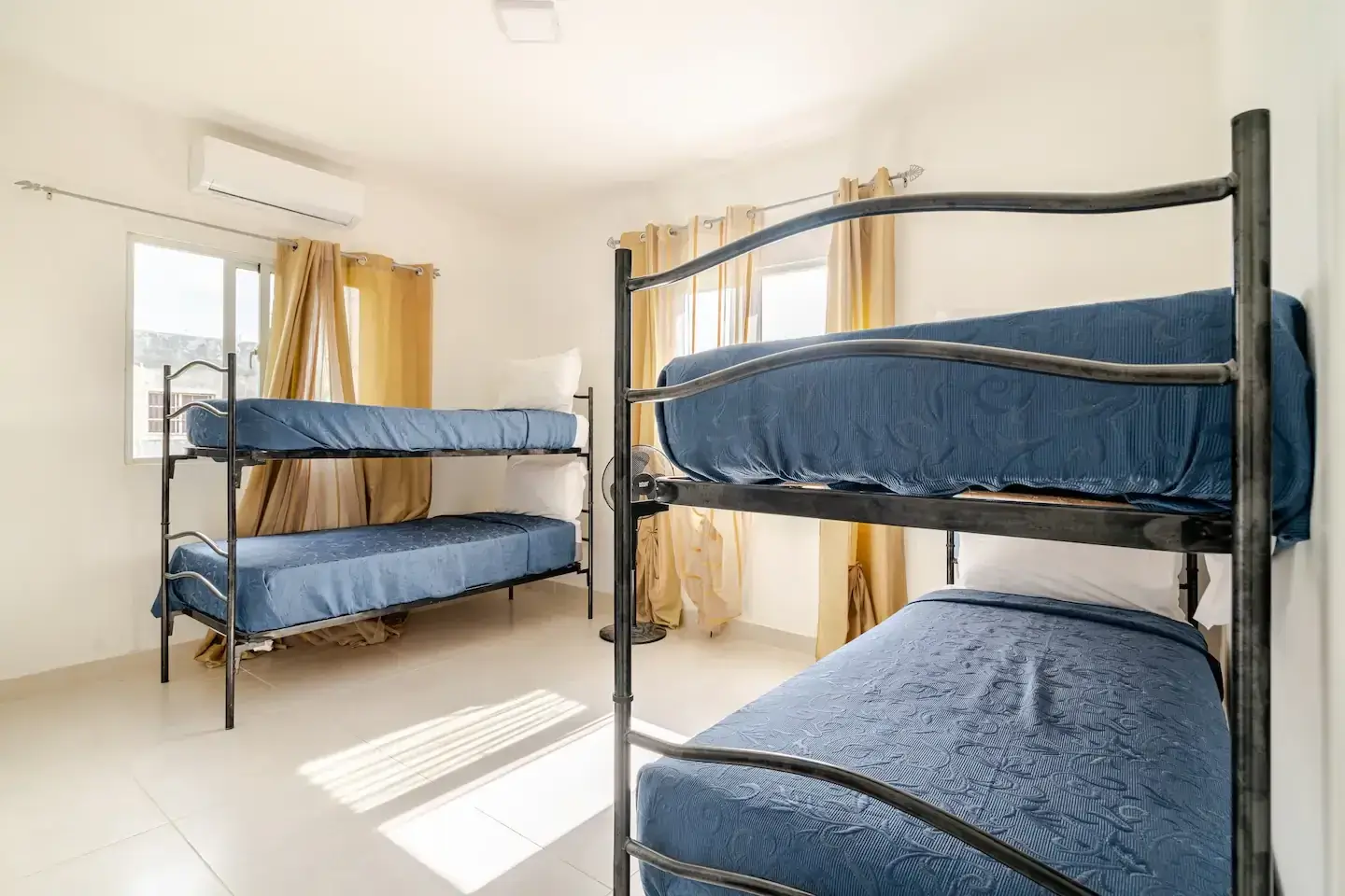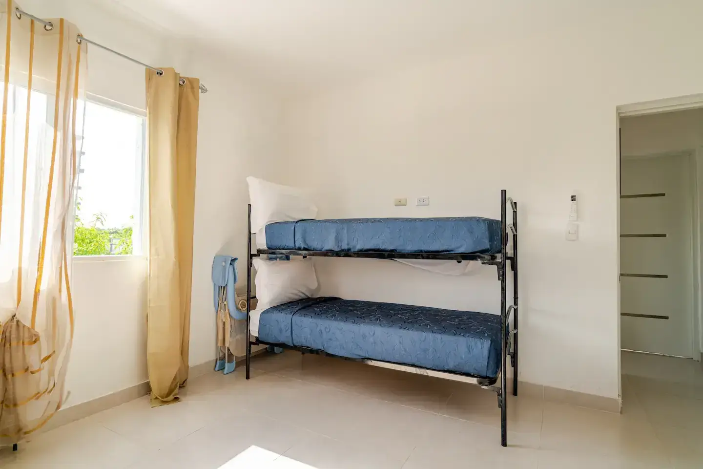 Una camera con letti a castello accoglie tutti i membri della famiglia.