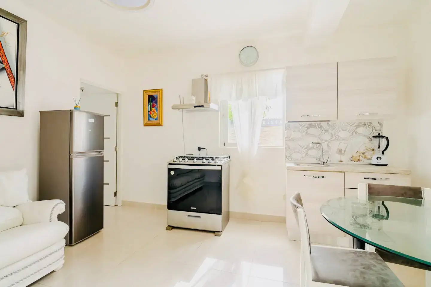 Un grazioso open space con cucina attrezzata e con gli ampi infissi permettono alla luce naturale di illuminare l’ambiente, creando un’atmosfera accogliente e rilassante.